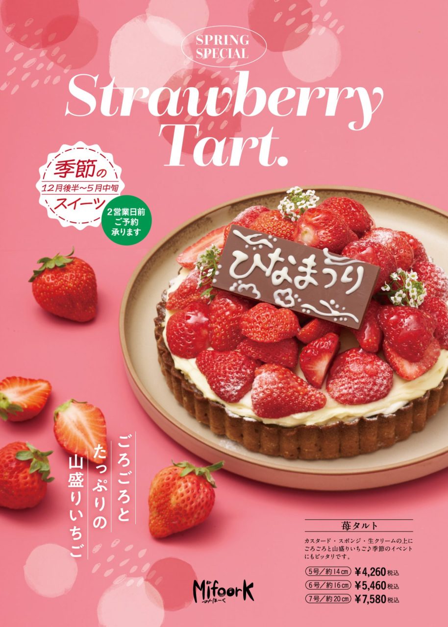 • 5月中旬〜12月後半の間は苺が他のフルーツに変わる場合がございます。